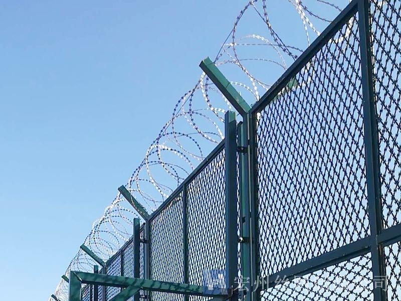 監(jiān)獄防護(hù)網(wǎng)又稱監(jiān)獄隔離網(wǎng)或監(jiān)獄隔離柵,山東監(jiān)獄隔離網(wǎng)產(chǎn)品由護(hù)欄網(wǎng)直接生產(chǎn)廠家--宏州護(hù)欄網(wǎng)廠生產(chǎn)提供,產(chǎn)品主要是采用高強(qiáng)度的刀片刺網(wǎng)與普通防護(hù)網(wǎng)的結(jié)合,由V型支架立拄,加強(qiáng)型焊接片網(wǎng),安全防盜連接件和刀片刺網(wǎng)組成.刀片刺網(wǎng)是一種新型防護(hù)網(wǎng),由銳利尖角鍍鋅鋼板或不銹鋼薄板做刀片,鋼絲做芯線組合而成的防護(hù)器材.監(jiān)獄刺網(wǎng)護(hù)欄可平地安裝,也可在圍墻上二次安裝,有效防止攀逃。