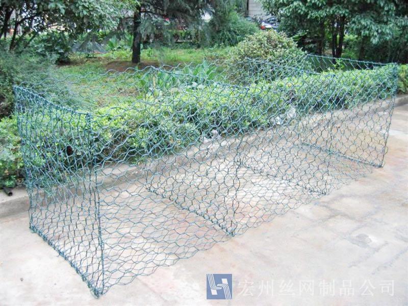 石籠網(wǎng)箱它是由重型六角網(wǎng)剪裁、折疊加工而成的鐵絲網(wǎng)箱籠,一般由4片重型六角網(wǎng)折疊組裝成的網(wǎng)箱,一片大的六角網(wǎng)折疊成長方體的4個(gè)大面,兩頭有兩小片的六角網(wǎng),中間有隔板網(wǎng)片。